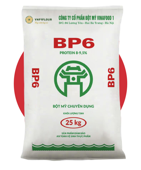 Bột mì chuyên dụng BP6 được sản xuất từ nguyên liệu lúa mì mềm, phù hợp để làm các sản phẩm bánh bông lan (cake), bánh quy (cookies), Custard…