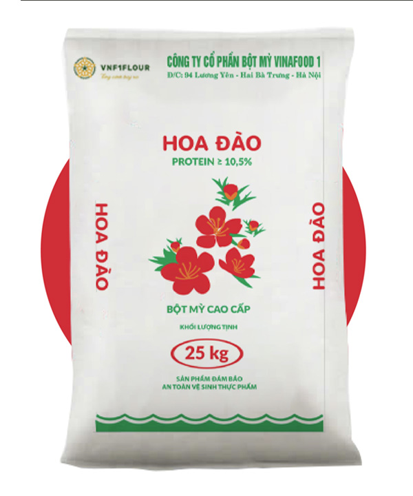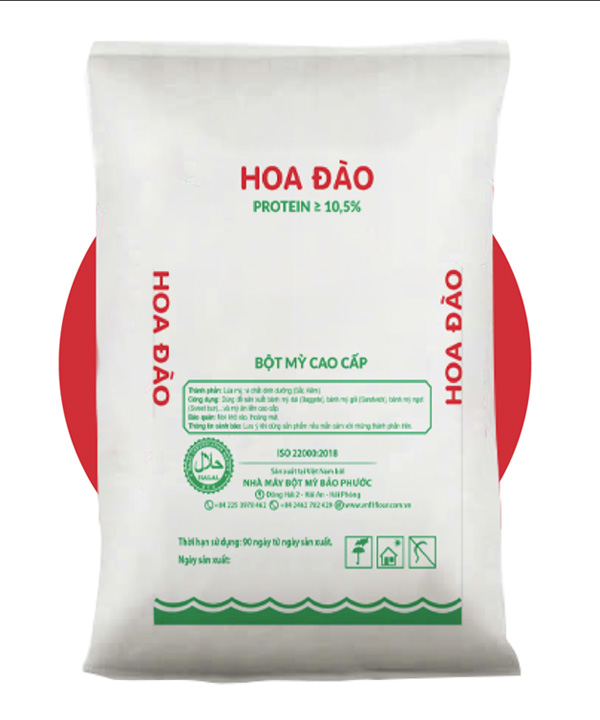 Bột mì cao cấp Hoa Đào được sản xuất từ nguyên liệu lúa mì có hàm lượng Protein cao, tính chất gluten tốt, khả năng hấp thụ nước tốt… Phù hợp để làm các sản phẩm bánh mì cao cấp như: Bánh mì dài (Baggete), bánh mì Việt Nam…