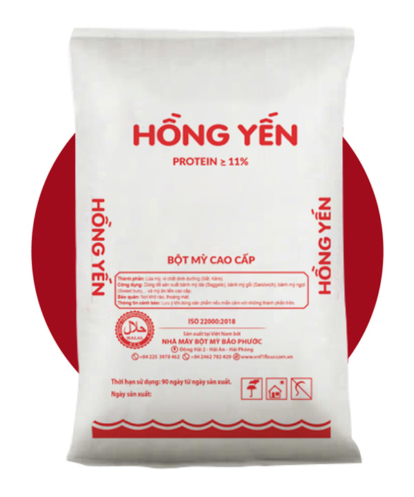 Bột mì cao cấp Hồng Yến được sản xuất từ nguyên liệu lúa mì có hàm lượng Protein cao, tính chất gluten tốt, khả năng hấp thụ nước tốt… Phù hợp để làm các sản phẩm bánh mì cao cấp như: Bánh mì dài (Baggete), bánh mì Việt Nam…